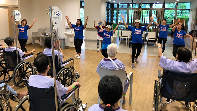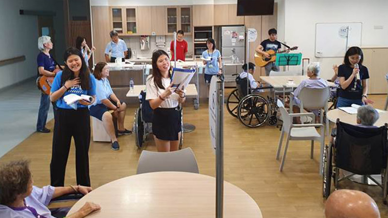 Every fortnight, this group of volunteers belt out familiar oldies during lunch time in the communal dining area in the wards.
