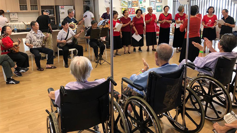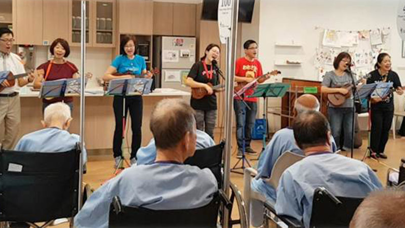 Volunteers in this ukulele interest group from Nee Soon South Constituency perform monthly for patients in the wards.
