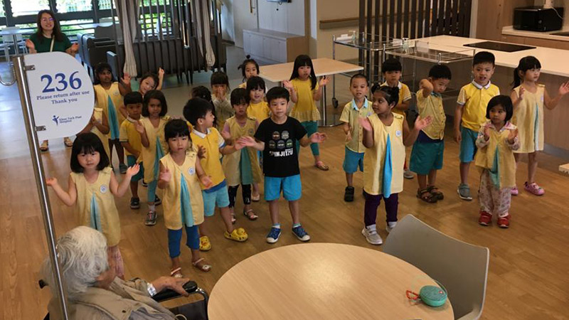 Children from the pre-school visit the wards every first Tuesday of the month to engage patients in art and cooking sessions. This encourages inter-generation bonding.