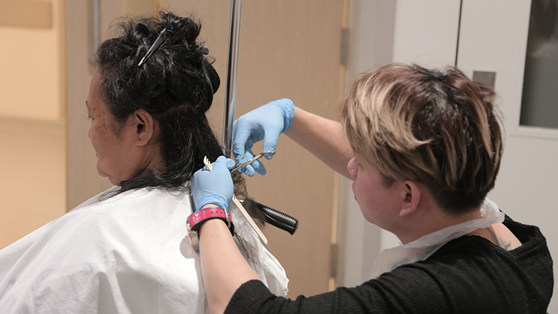 These volunteer hair stylists help our patients look and feel their best! Feeling good about their appearance may help to boost our patients' mood and morale!